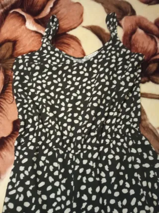 Mono de tirantes con estampado floral sobre fondo negro. Presenta un diseño cruzado con lazada. Queda súper bonito lo vendo porque se me ha quedado pequeño. Ti me un pequeño cosido en la parte de atrás que no se nota - Estampado de flores multicolor. - Tirantes finos. - Lazada lateral.