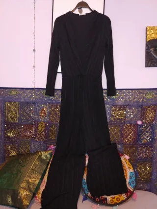 Precioso mono negro para ocasiones especiales. Es nuevo y tiene un diseño elegante y favorecedor. Talla única - Escote en pico. - Cierre con lazo en la cintura. - Tejido suave y ligero. No es de chándal. Queda Pegado. Costó 16€. NO SE REBAJA