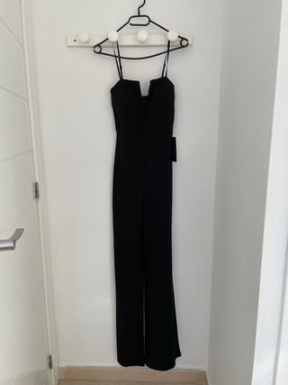 Elegante mono de Zara, perfecto para eventos o salidas nocturnas. Su diseño moderno y favorecedor lo convierte en una pieza clave ( collar no incluído ) - Escote en pico pronunciado. - Cintura elástica. - Bolsillos laterales.