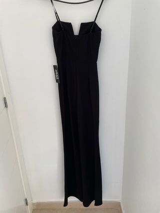 Mono largo elegante de noche – The Pretty Dress Company Mono negro de tirantes finos, ideal para eventos y fiestas. Corte elegante, estiliza la figura. Talla: XS Estado: Nuevo con etiqueta