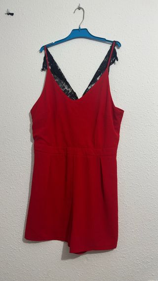 Mono rojo de Primark, talla 44 (XL), en perfecto estado. Con tirantes finos y detalle de encaje negro en el escote, elegante y muy favorecedor. Corte fluido tipo short, cómodo y estiloso. Ideal para fiestas, cenas o eventos. Sin desperfectos. 💰 Precio: 10 €