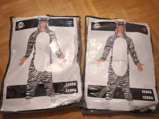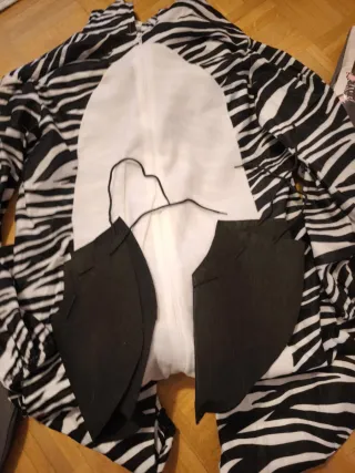 Disfraz de cebra para adulto, perfecto para fiestas o eventos. - Mono completo con capucha y cola. - Diseño a rayas blancas y negras. Talla L-XL El precio es individual por cada disfraz.