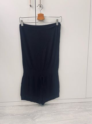 💫 Mono corto de algodón negro escote palabra de honor. 💫Con elástico encima de pecho, piernas y cintura. Cordón en cintura. 💫Talla M. 💫Ideal para piscina o pijama.