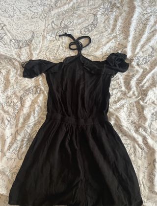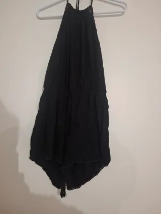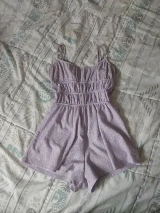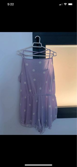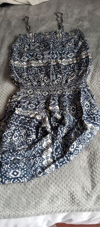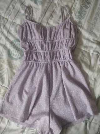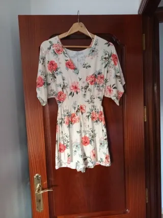 Mono corto de verano con un bonito estampado. - Diseño con fruncido en la cintura. - Volantes en los bajos. Pone que es S pero para mí talla como M.