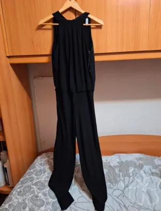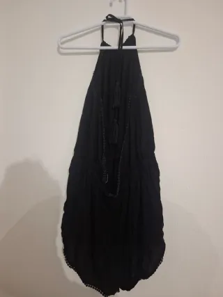 Mono largo de verano en color negro. Diseño elegante y cómodo. - Tejido ligero y fluido. - Cintura elástica.