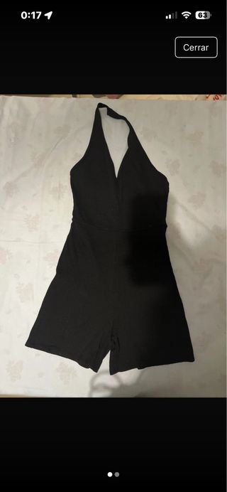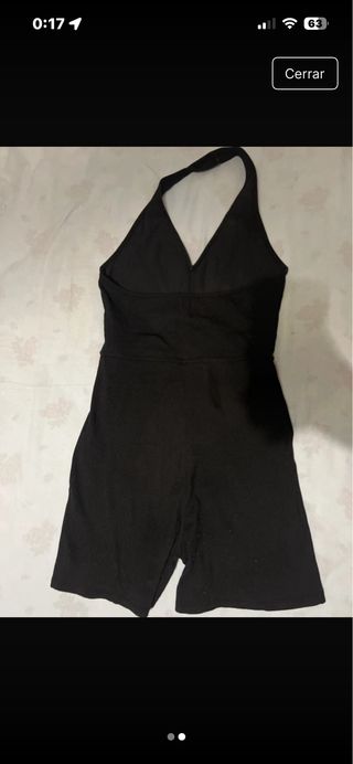 Mono corto de verano con escote halter. - Diseño de una pieza. - Piernas cortas. - Tejido elástico. Con la espalda descubierta ufff 🔥