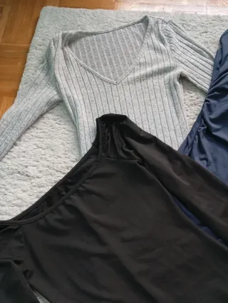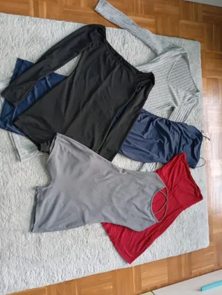 Bolsa con ropa de verano para mujer. Hay un total de 15 prendas Camisetas de mujer tirantes,1 mono,pantalon corto ,un chaleco ,1 chaquetilla,1 vestido