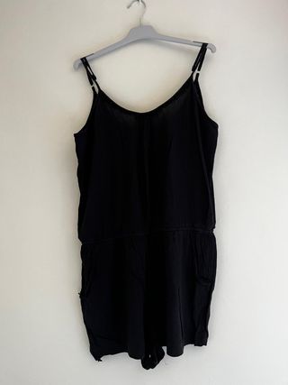 Mono corto de verano, muy ligero y cómodo. - Tirantes finos. - Cintura elástica. - Detalle de encaje en el bajo.