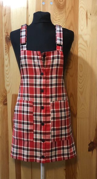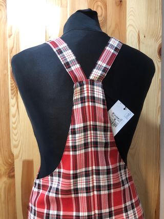 Peto, pichi de falda de tirantes regulables, dos bolsillos, fesquito para verano, buena caída, abertura delantera de botones, precio en tienda 39,99€