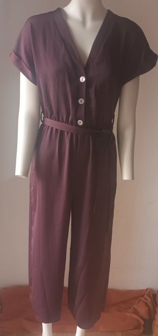 Mono ideal para el verano, Pull & Bear, talla S, pero es amplio y suelto, tela arrugada color teja. Pata ancha. OCASIÓN.