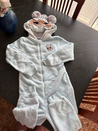 Pijama de cuerpo entero con diseño de lobo. -Talla 12 años - Tejido suave y peludo. - Capucha con detalles de lobo. - Cremallera frontal. - Puños y tobillos elásticos.