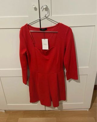 Mono de Bershka en color rojo. - Diseño con escote cuadrado. - Manga 3/4 - Pantalón