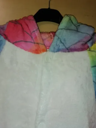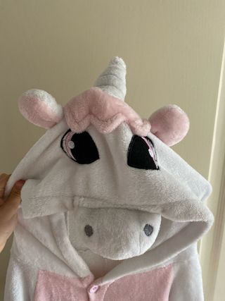 Pijama calentito de invierno unicornio, mono pieza entera con cremallera y capucha. Edad de 4-7años aproximadamente. Mi hija mide ahora 1,25 y ya le queda justo.