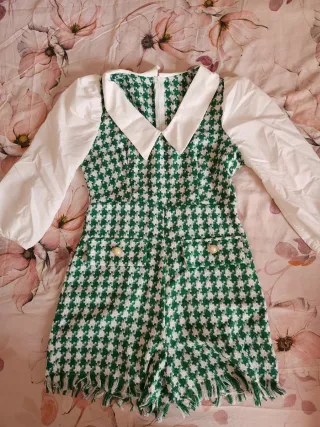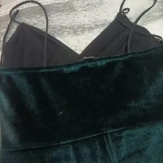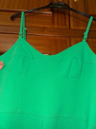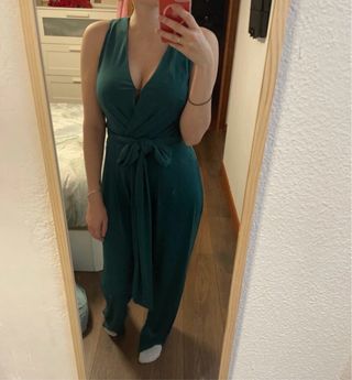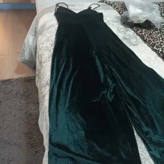 Mono de terciopelo en color verde esmeralda. Ideal para eventos o para un look elegante. Llega más abajo de las rodillas .su estilo es asi solo se a usado una sola vez .10€ negociable - Tejido suave y brillante. - Tirantes finos. - Piernas anchas.