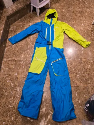 Mono de esquí o snowboard de dos tonos. - Color azul y verde lima. - Capucha integrada. - Cremallera frontal. - Cinturón ajustable. - Bolsillos con cremallera.