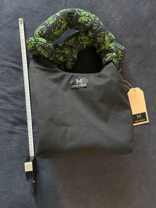 Bolso de mano MON MALE reversible con un diseño llamativo. - Asa acolchada con estampado verde. - base quadrada - Exterior negro. - Incluye etiqueta de la marca.