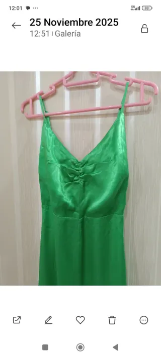 Mono largo de raso, sin estrenar. - Diseño con tirantes finos. - Detalle fruncido en el escote. - Tejido satinado.