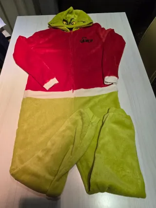Mono pijama con capucha del personaje Grinch. Ideal para estar cómodo en casa. - Diseño de dos piezas: parte superior roja y verde, parte inferior verde. - Capucha con detalles faciales del Grinch. - Cierre de cremallera frontal.