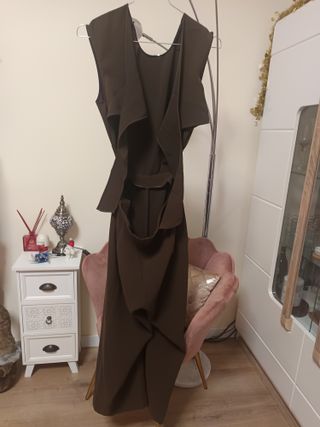 Mono largo de corte elegante, ideal para eventos especiales. - Diseño sin mangas. - Cinturón dorado con detalle de hojas ( a parte) 3€ - Tejido plisado en las piernas. mi ex solo lo usó una vez.