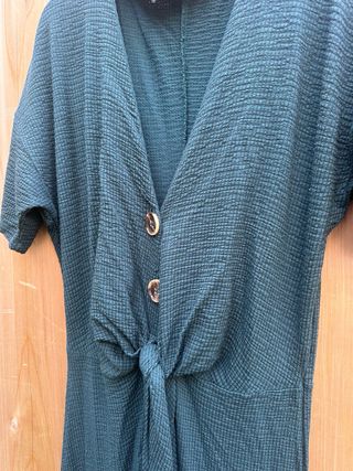 Mono largo de manga corta con un diseño moderno y favorecedor. - Color verde intenso. - Tejido con textura. - Cierre de botones. - Detalle de nudo en la cintura. - Talla M - Stradivarius