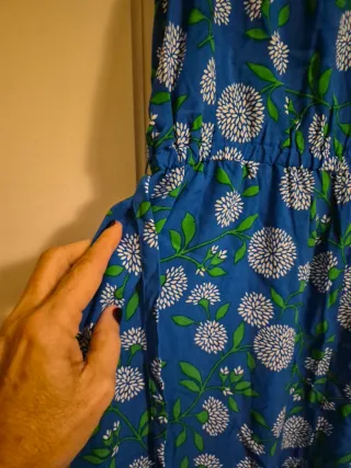 Mono largo con estampado floral en tonos azules y verdes. Presenta tirantes finos con lazada y cintura elástica. - Estampado floral. - Tirantes con lazada. - Cintura elástica.