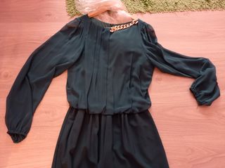 Precioso mono Marca Naf Naf Talla 38 Manga larga Preciosa en el puño Es corto Color verde oliva o verde oscuro Escote en pico con tela negra con dibujo Espalda con abertura Hay fotos de todo Nuevo sin estrenar