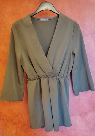 Color verde caqui. NUEVO con etiqueta. Lo vendo por no usar y porque en mi ciudad solo lo podría llevar en verano. Es preciso y queda como un guante. Sirve desde una XS hasta una L porque es muy elástico y se adapta bien. El tejido no es muy grueso así que es perfecto para primavera verano, o incluso invierno dependiendo de dónde vivas porque se puede llevar con jersey o chaqueta encima.