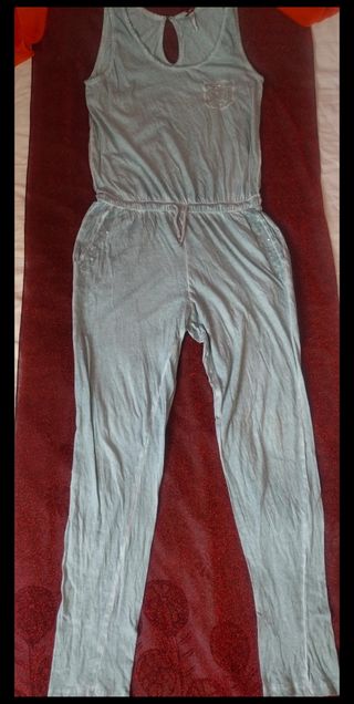Pantalón mono de color verde oliva. Está en buen estado. - Tirantes finos. - Cierre con cordón en la cintura. - Tejido suave.