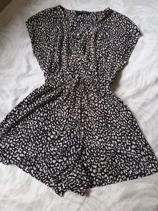 Mono corto de Zara en color verde seco. Tiene un diseño tipo blazer con cinturón. - Sin mangas. - Cuello solapa. - Cinturón anudado a la cintura. - gomas cintura, cierre cremallera hasta cintura y botones en la parte superior -bolsillos anchos - medidas: 78 cm largo, 37 cm cintura (se puede adaptar más ancho con la goma elástica hadta 44 cm aprox) -tela con caída, suave estilo piel melocoton
