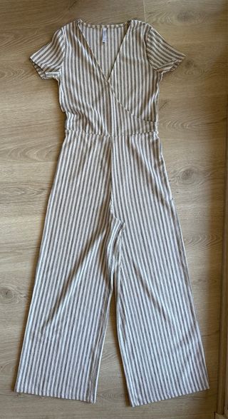 Mono de Stradivarius con estampado de rayas verticales. - Diseño cruzado en la parte superior. - Cintura elástica para un mejor ajuste. - Piernas anchas tipo palazzo. - Cierre clip en el pecho