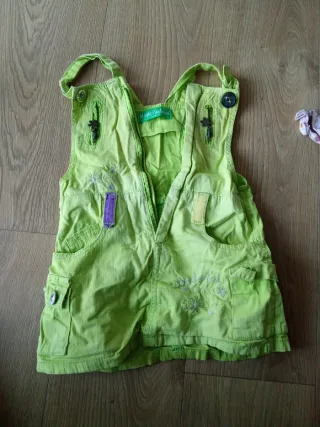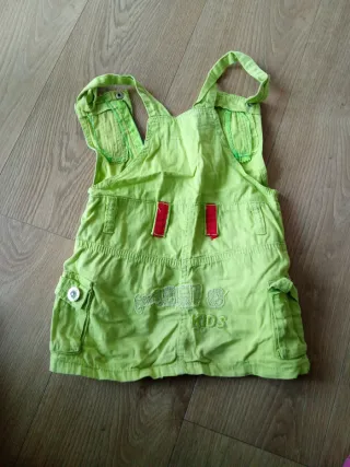 Mono falda para niña con un diseño divertido y práctico.Esta arrugado por estar guardado - Tirantes ajustables. - Cremallera frontal. - Bolsillos laterales. - Adornos bordados.