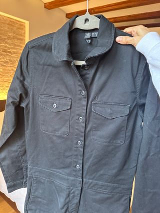 Mono corto de tela vaquera en color negro. Tiene cuello camisero y cierre de cremallera frontal. - Dos bolsillos en el pecho. - Cinturón de tela a juego. - Manga corta. Está totalmente nuevo sin estrenar en el Bershka valía unos 30 € vendo porque fue un regalo pero la talla no me queda y perdí el ticket