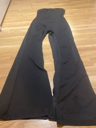 Elegante mono negro, perfecto para eventos especiales. - Diseño de pierna ancha. - Abertura frontal. - Tejido fluido. Se ha usado una vez en una boda