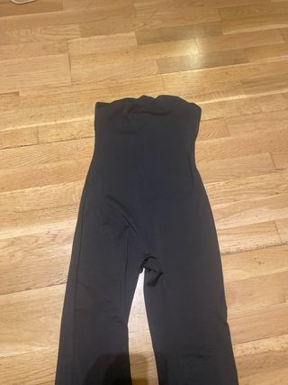 Mono largo de tejido elástico. - Diseño sin tirantes. - Piernas acampanadas.