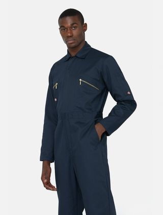 Mono Redhawk coverall, tipo aviador. Marca Dickies, en color azul oscuro (navy blue) - Cierre frontal con cremallera. - Bolsillos en el pecho con cremallera. - Cintura elástica. - Bolsillos laterales. Prenda funcional (trabajo, ocio o dresscode) con múltiples bolsillos y confeccionada con materiales resistentes para ofrecer la máxima durabilidad (65% poliester y 35% algodón) Dos bolsillos en el pecho con cremallera y dos más laterales. Doble bolsillo tipo boli en la manga para cosas pequeñas Parte delantera con cremallera bidireccional y solapa con tachuelas para un acceso fácil Bolsillo en el pecho Multi bolsillo Bolsillo cargo