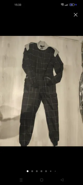 Mono de trabajo para karting. - Diseño a cuadros. - Cuello gris. - Cremallera frontal.