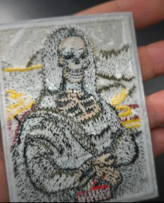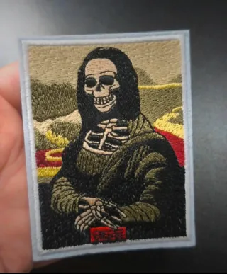 Parche bordado con un diseño único de la Mona Lisa como calavera. - Diseño detallado. - Acabado de alta calidad. Solo envios