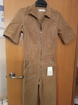Mono de pana de la marca Mango. Elástico, estilo retro, con cremallera en el pecho. Costó 49.99€. - Color beige. - Talla XS.