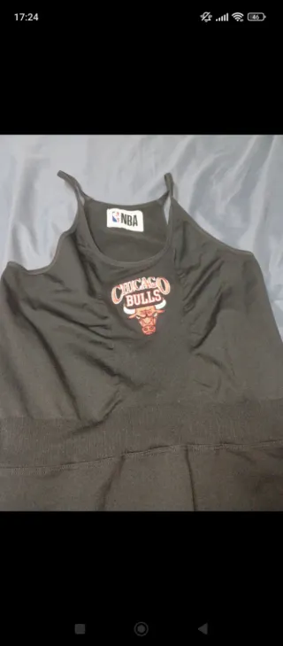 Mono largo con tirantes finos y un diseño deportivo. - Estampado del equipo Chicago Bulls en el pecho. - Tejido elástico y cómodo.