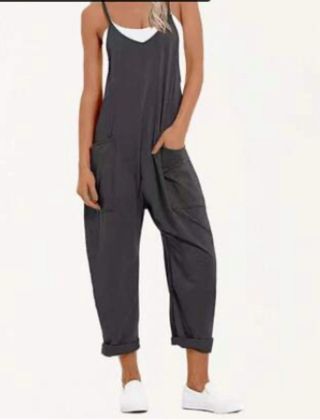 Mono fresco y cómodo, ideal para el día a día. - Diseño con tirantes ajustables - Bolsillos laterales. - Pierna ancha y larga. Pone una XS pero viene amplia para talla S incluso M. Pregunta las medidas ☺️