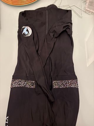 Mono térmico de entrenamiento para patinaje artístico de la marca Artrix. Diseñado para ofrecer comodidad y libertad de movimiento. mono premium con searoskys( faltan algunos) Está en perfecto estado solo tiene un pequeño roto en el estribo. - Diseño con cuello alto y cremallera frontal. - Adornos de pedrería multicolor en forma de alas. - Detalle de águila bordada en pedrería en el pecho. - Logo circular con águila en la manga izquierda. #axel