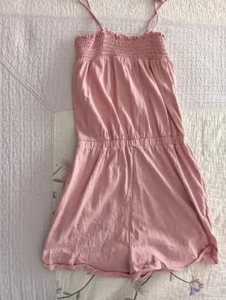 Mono de verano corto con tirantes finos y cintura elástica. - Diseño con cuerpo fruncido. - Tejido suave y ligero.