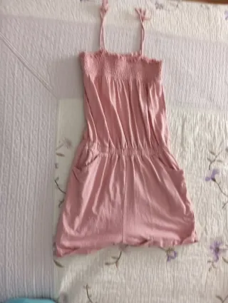 Vestido/Mono corto de popelín. Tiene un pantalón corto incorporado y bolsillos. Sin uso.