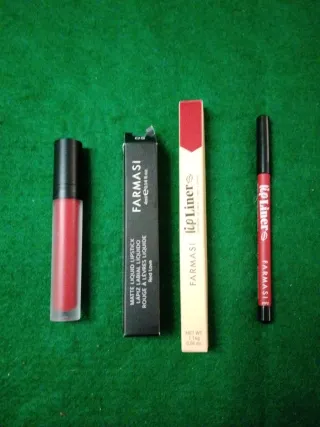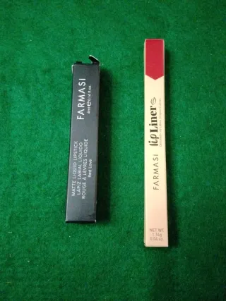 Conjunto de maquillaje Farmasi que incluye un labial líquido y un delineador de labios. - Labial líquido mate. - Delineador de labios. - Tono: Red Love.