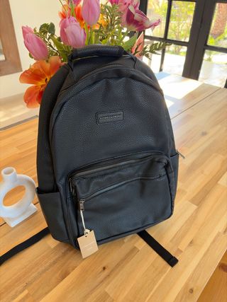 Mochila de lona resistente, ideal para viajes o uso diario. Su diseño combina tonos beige y marrón para un estilo versátil. - Material de lona duradero. - Correas ajustables para mayor comodidad. - 30x55x20 cm