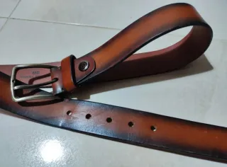 Cinturón de piel de la marca Miguel Bellido. - Hebilla metálica plateada. - Diseño clásico y elegante. - Acabado desgastado en los bordes.