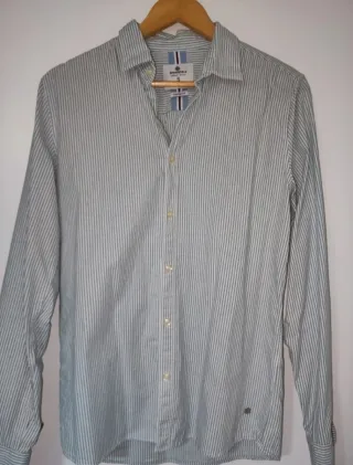 Camisa de manga larga con un diseño de rayas finas. - Cuello clásico. - Cierre de botones. - Detalle de logo en la parte inferior.