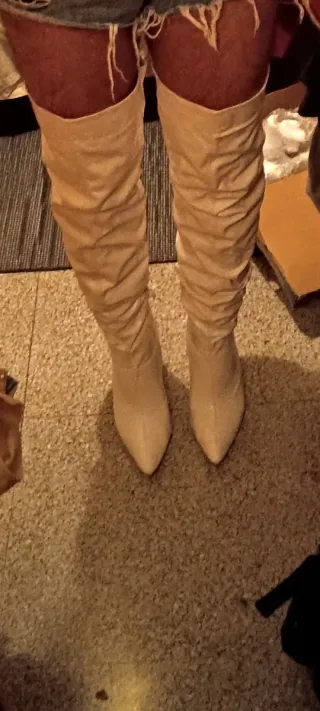 Botas altas de estilo slouchy, con un diseño arrugado muy actual. Son cómodas y versátiles. - Material: Polipiel - Tacón: Aguja - Punta: Fina