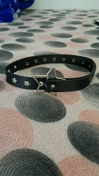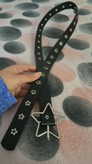 Cinturón de estilo moderno con un diseño único. No lo usaba pq tenia las caderas anchas. - Mide 100cm - Hebilla en forma de estrella. - Adornado con pequeñas estrellas. - Material sintético.