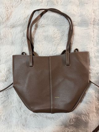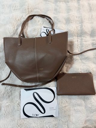 Bolso de mano y neceser a juego. - Bolso de cuero texturizado. - Cierre de cremallera en el neceser. - Costuras blancas decorativas.